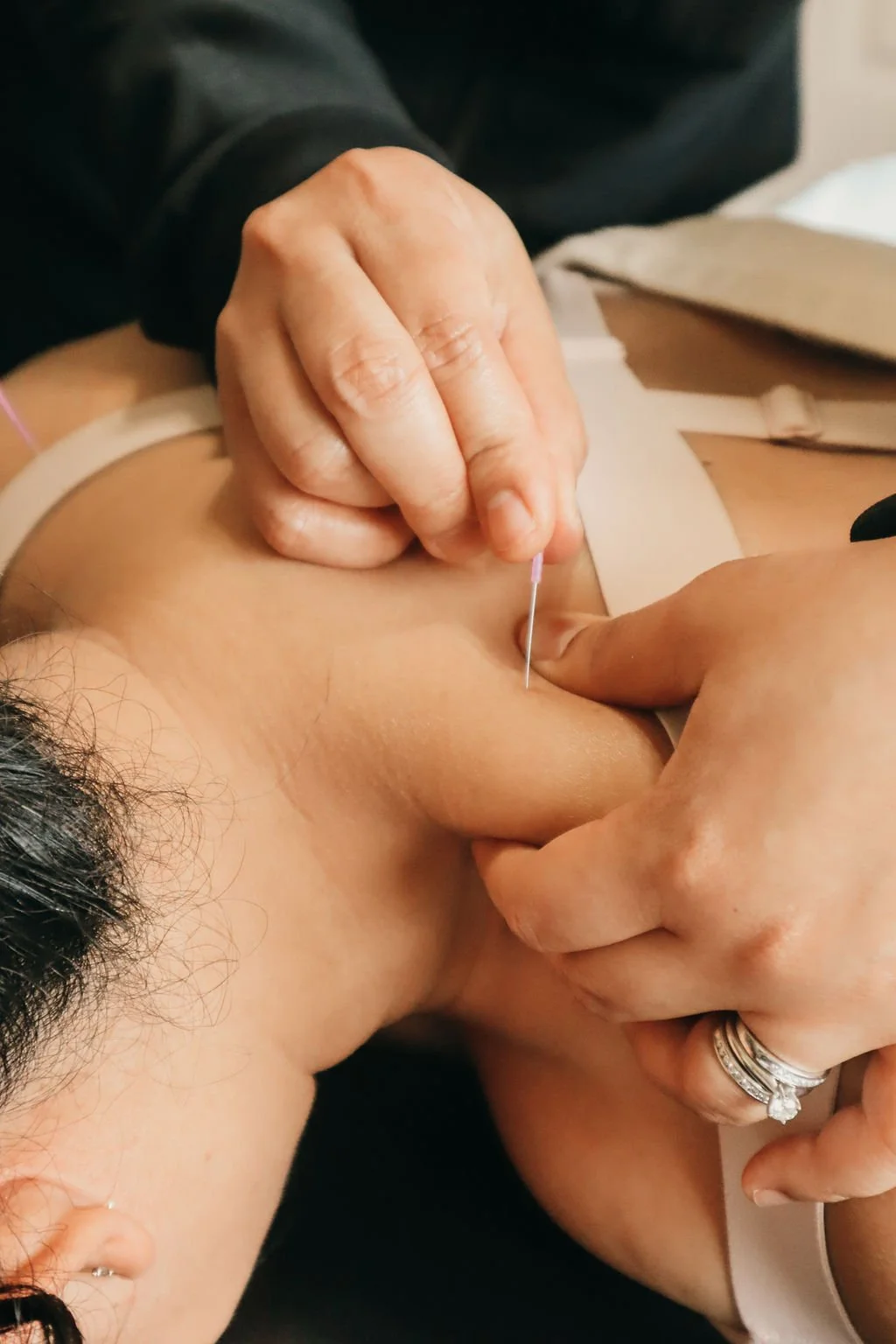 This requires an insertion of a sterile acupuncture needles to treat trigger point in muscles or fascia to decrease pain and enhance muscle activation. This can be done with and without Electrical Stimulation.